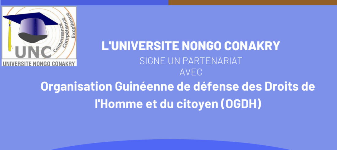 L’Université Nongo Conakry UNC vient de signer un accord de partenariat avec la clinique juridique de l’organisation guinéenne de défense des droits de l’Homme et du citoyen (OGDH).Lire Plus